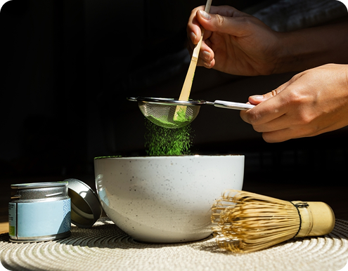 To make the perfect DenTo Matcha, sift 1 teaspoon of matcha into a bowl, add 2 ounces of hot (but not boiling) water, and whisk in a W or M motion until frothy. Enjoy it straight as a traditional tea or mix with milk for a smooth, creamy matcha latte.